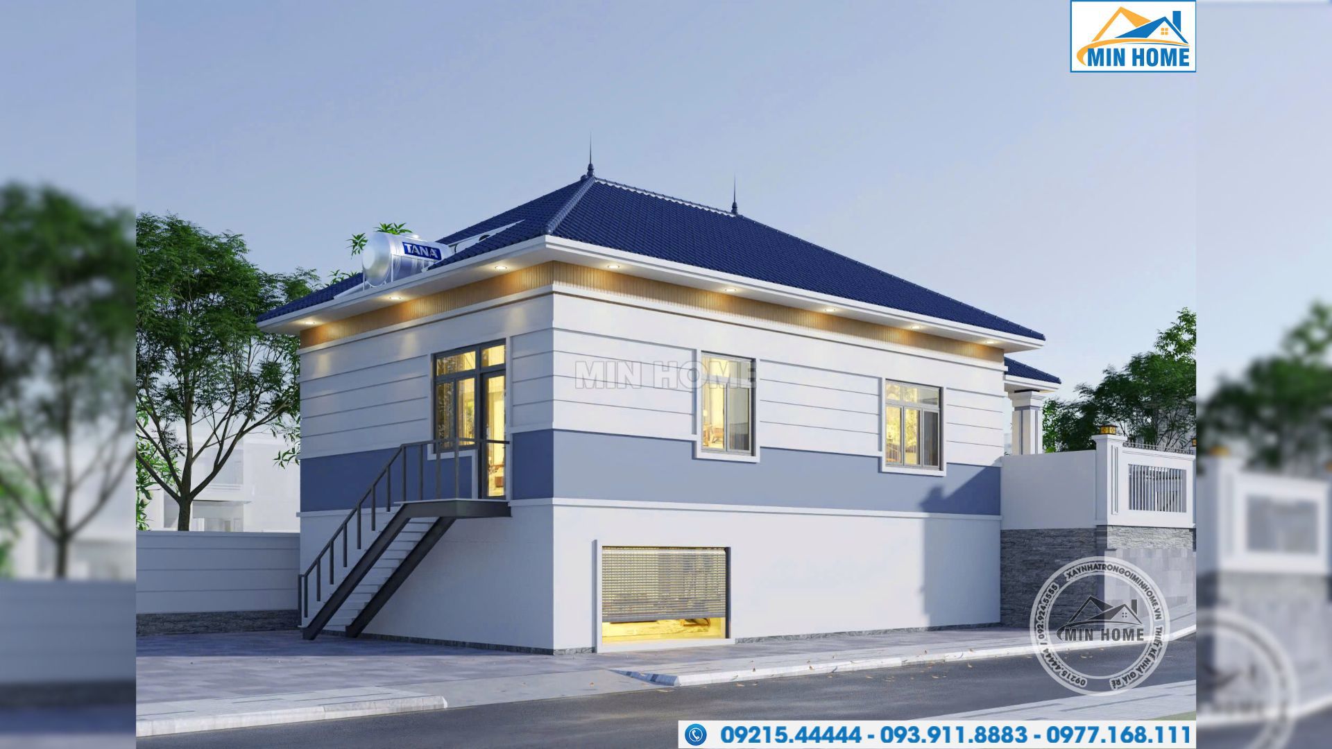Hoàn thiện vẻ đẹp tổng thể là hệ mái Nhật có độ cao 2,9m. Với độ dốc vừa phải, mái Nhật không chỉ giúp thoát nước nhanh mà còn là lớp cách nhiệt hoàn hảo cho ngôi nhà. Phần diềm mái được Min Home khéo léo ốp nhựa giả gỗ cao cấp tạo cảm giác ấm cúng và gần gũi.