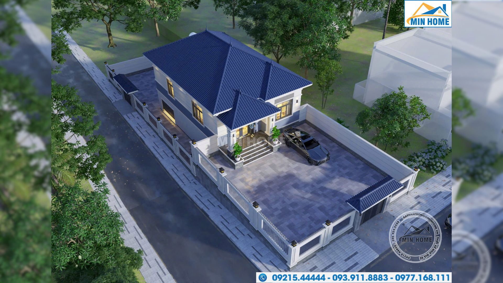 Sự phối trộn màu sắc tại đây là một điểm cộng lớn. Min Home sử dụng tông trắng tinh khôi làm chủ đạo được mệnh danh là bền bỉ với thời gian. Để tạo chiều sâu, Min Home đã điểm xuyết những mảng sơn xanh ghi đầy cá tính tại vị trí phân tầng và chân tường. Sự kết hợp giữa các gam màu lạnh không chỉ tạo cảm giác dịu mát mà còn giúp ngôi nhà trở nên nổi bật một cách trang nhã giữa không gian xanh mướt đặc trưng của vùng cao nguyên.