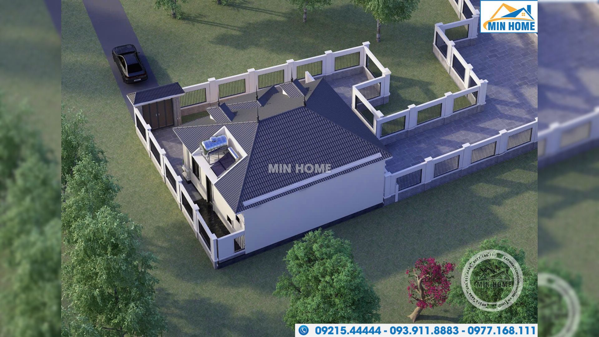 Ngoài ra, phần bậc tam cấp của ngôi nhà vườn 1 tầng giá rẻ nâng cao 450mm đảm bảo thẩm mỹ, tránh ẩm thấp và đồng thời mang ý nghĩa vượng khí sinh tài. Tỷ lệ giữa chiều cao thông thuỷ 3,9m và chiều rộng mặt tiền 10,3m được cân chỉnh để ngôi nhà trông cao ráo, vững chãi hơn. Từ mọi góc nhìn, tổng thể đều hài hòa, cân đối khiến mẫu nhà này nhận được nhiều lời khen từ khách hàng của Min Home.