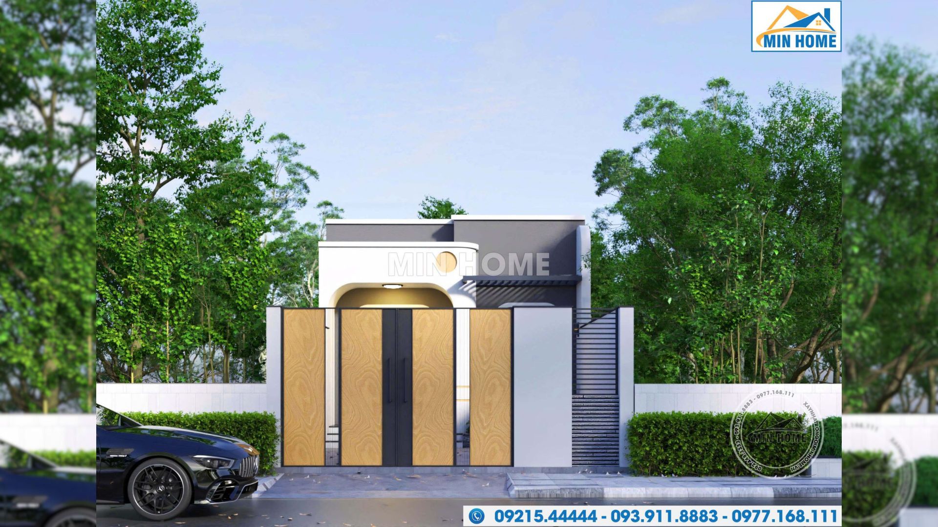 Mẫu nhà 1 tầng mái bằng gây ấn tượng ngay từ ánh nhìn đầu tiên nhờ hệ cổng được thiết kế theo phong cách tối giản nhưng vẫn toát lên sự tinh tế và hiện đại. Điểm nhấn nổi bật nằm ở sự kết hợp hài hòa giữa hệ cửa sắt sơn tĩnh điện giả vân gỗ mang gam màu ấm áp và phần tường bao bê tông kiên cố, chắc chắn. Cách phối hợp vật liệu này không chỉ đảm bảo yếu tố an ninh, riêng tư cho không gian bên trong mà còn góp phần tạo nên diện mạo trẻ trung, năng động. Tổng thể thiết kế phù hợp với xu hướng kiến trúc tối giản đương đại, đồng thời giúp công trình giữ được giá trị thẩm mỹ bền vững theo thời gian.