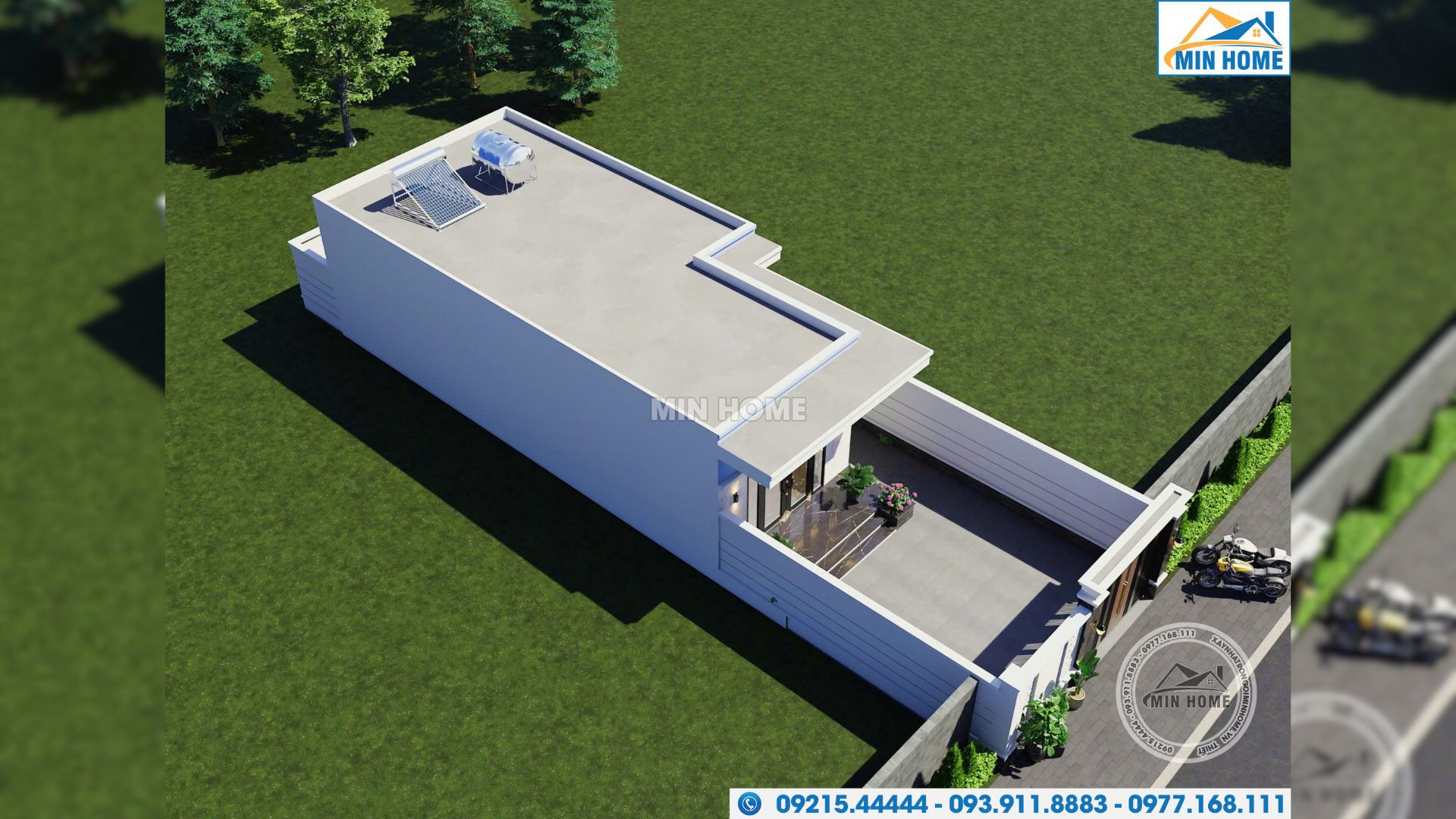 Trong bài viết này, Min Home mời bạn cùng khám phá một mẫu nhà vườn mini mái bằng hiện đại được đội ngũ triển khai thực tế tại TP Hồ Chí Minh. Công trình hướng tới nhóm khách hàng yêu thích không gian sống gọn gàng, trẻ trung, chi phí hợp lý nhưng vẫn đảm bảo tính thẩm mỹ và khả năng sử dụng lâu dài. Ngay từ tổng thể bên ngoài, ngôi nhà đã tạo được thiện cảm nhờ bố cục rõ ràng, hình khối dứt khoát và cách xử lý mặt tiền đơn giản mà tinh tế.